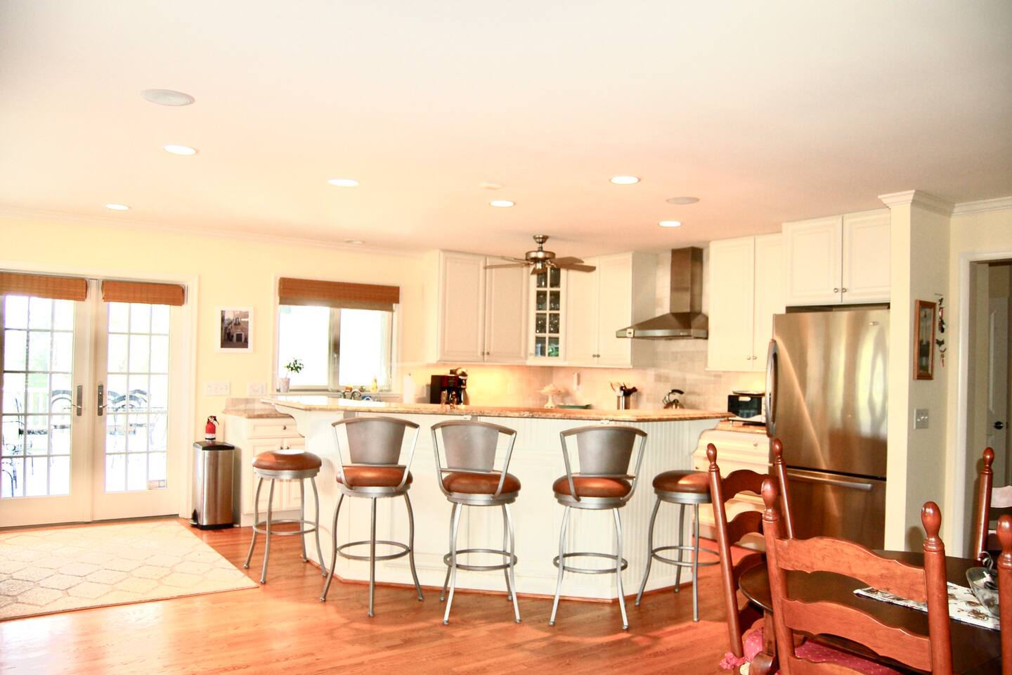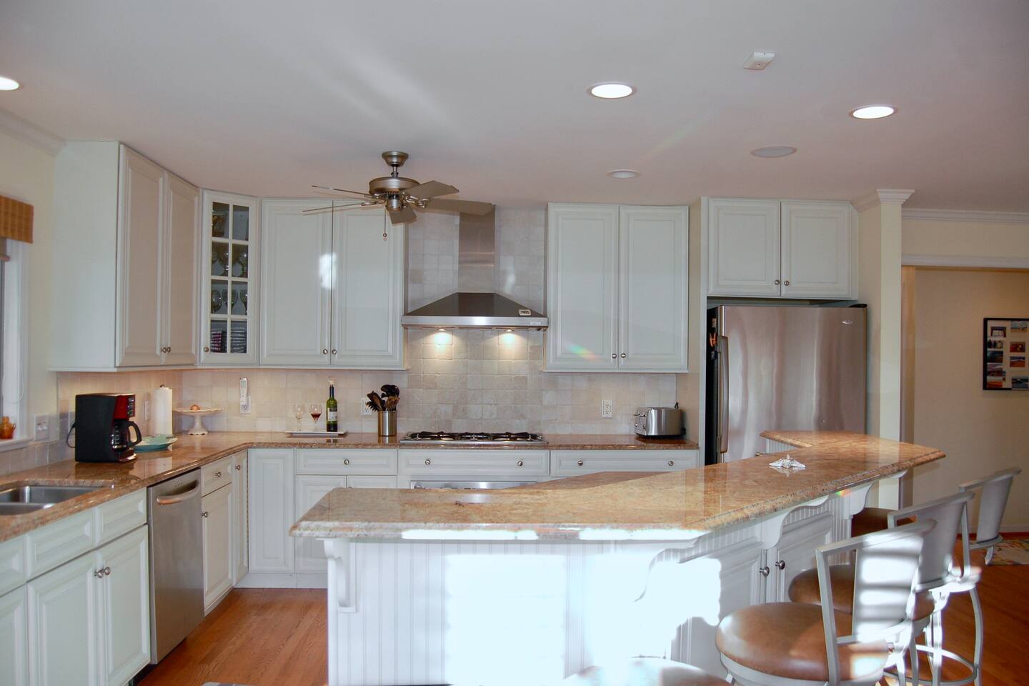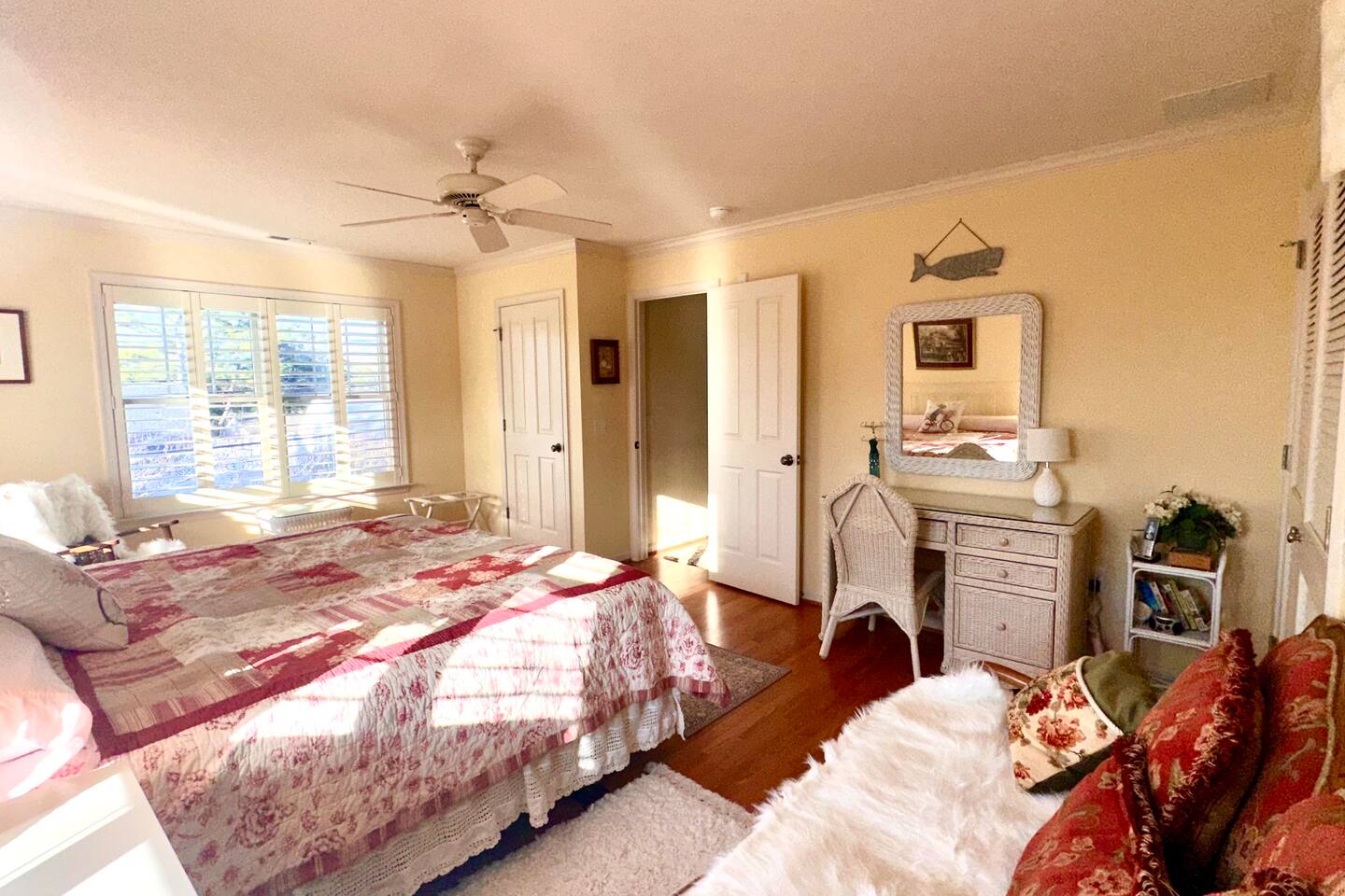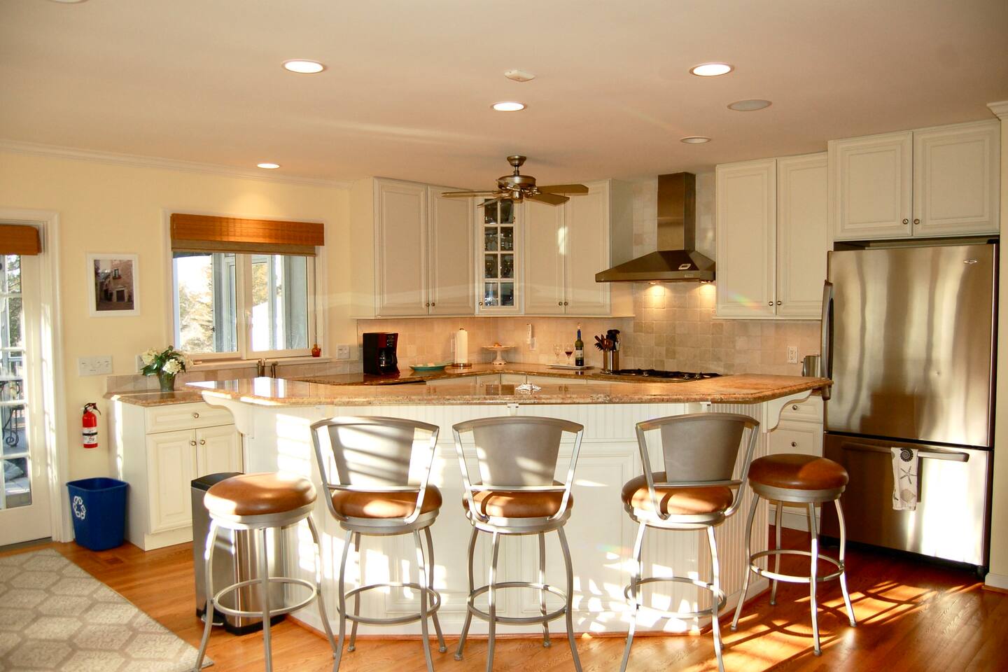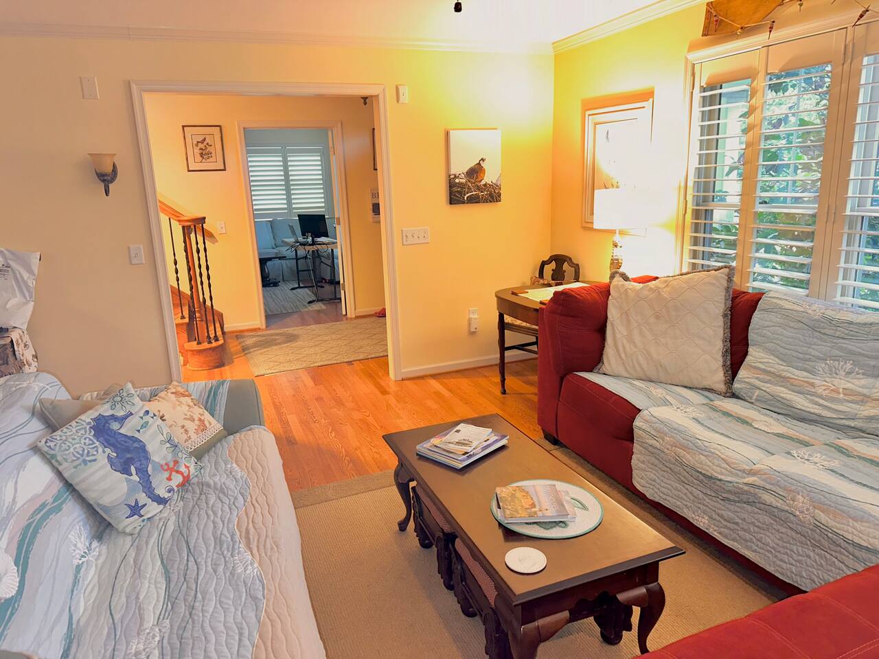THE LEWES & CLARK BEACH HOUSE: Ideally located just three houses away from Lewes Beach, this 3000 SF house offers the perfect space to enjoy an inviting, classy and cozy beach vacation home that can easily sleep multiple families. The house layout has upstairs 4 bedrooms and 3 full bathrooms. Downstairs a flexible TV room with queen sofa beds could double as a bedroom with an adjacent bathroom with shower. The house is perfect for separate quiet time and large first floor living/dining and kitchen open areas with a two-story screened porch with backyard views of tidal wetlands looking toward the Lewes Canal. The house is outfitted for for all seasons, stocked with board games, books and many beach toys in the garage, with fun for all ages. The house has multiple desks and portable table to offer a novel remote work location. * Currently accepting reservations for 2025 and 2026. * Saturday to Saturday weekly rental during the summer. THE LEWES & CLARK BEACH HOUSE SLEEPS 15 WITH MANY OPTIONS: * 15 adults and children in upstairs bedrooms. * The 2nd living room doubles as a 5th bedroom to sleep 4. * If all adults, the town limits the number to 12. ****************************************************************************************** 1ST FLOOR: * PROVIDES GATHERING, COOKING, DINING AND RELAXING IN LIVING ROOM & KITCHEN AREA * Return from the beach entering from the back deck after using the outdoor shower and dropping gear in the garage. Grab a cold drink or snack from the second refrigerator and pantry in the laundry room. LIVING ROOM/KITCHEN/DINING ROOM: The open living room/dining/kitchen centers conversation and activity between the dining room table, adjoining the chef’s kitchen, bay-window reading nook, and the fireplace seating area. This area is well equipped with a wonderful library of books, puzzles and games. KITCHEN: The well-equipped kitchen has stainless steel appliances, granite counters, 5-seat breakfast bar, new dishwasher and 5 burner gas stovetop with warming drawer and 2 ovens. The kitchen exits to screened porch and gas grill on the deck. Flexible dining options for up to 19+ at mealtime in dining room, breakfast bar and screened porch, and outdoor picnic table. 2ND LIVING ROOM (or 5th BEDROOM) This 1st floor second living room has 2 queen sofa beds with adjoining bathroom with walk-in shower. The 2nd living room has a 48” wall mounted flat screen tv with 500+ channels, DVD player, and books. LAUNDRY ROOM: The laundry room has a new large washer and dryer, a utility sink, pantry and second refrigerator with ice maker. GARAGE: * Lots of gear available to play or relax at the beach or go for a bike ride on the Breakwater Trail. * Bikes, beach chairs, toys, beach bags, cooler and kayaks. * Use of bikes and kayaks are at renter's own risk, per rental agreement. SCREENED 1ST FLOOR PORCH: * Views of sunset and wetlands toward canal * Table for 6 * Rocking chairs * Table for 2 * Gas grill on deck * Picnic table in yard 2ND FLOOR - FOUR BEDROOMS * The 2nd floor has four bedrooms. * 2 bedrooms have private ensuite bathrooms. * One bedroom has private access to the 2nd story screened porch overlooking the Lewes Canal wetlands. This bedroom shares a Jack and Jill bath with double sinks, a shower and Jacuzzi tub with the VanGogh Bedroom that has a queen bed and a crib. KING BEDROOM SUITE #1 - WETLANDS VIEW (Sleeps 3) 1 Four-poster King, Twin Daybed, Private Full Size Bath, Full Size Closet, Spectacular view of Sunsets over Canal wetlands. KING BEDROOM SUITE #2 - COTTAGE BEDROOM (Sleeps 2) 1 King, Private Full Size Bath, Full Sized Closet, Night Stands, Work from Home Desk, Chair and LoveSeat. Sunrise view. KING BEDROOM SUITE #3 - PORCH BEDROOM (Sleeps 4) 1 King, Twin Daybed, Twin Trundle Bed, Night Stands, Dresser, Wall-mounted 48 inch TV, (with 500+ Xfinity Channels) and access to 2nd Story Screened Porch with hammock to enjoy canal wetlands views of Sunset. Jack and Jill Bath, Shared with Bedroom #4: Double sinks, Jacuzzi jetted Tub, & Large Shower. QUEEN BEDROOM #4 - VANGOGH BEDROOM (Sleeps 2 + baby) 1 Queen, 1 Cherry Wood Crib, Night Stands, Rocking Chair, VHS TV with Disney Movies. Jack & Jill Bath, Shared with Master Bedroom #3: Double Sinks, Jetted Tub, & Large Shower.