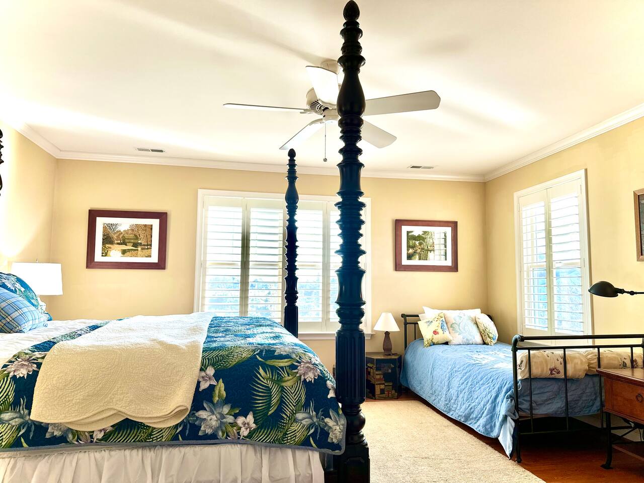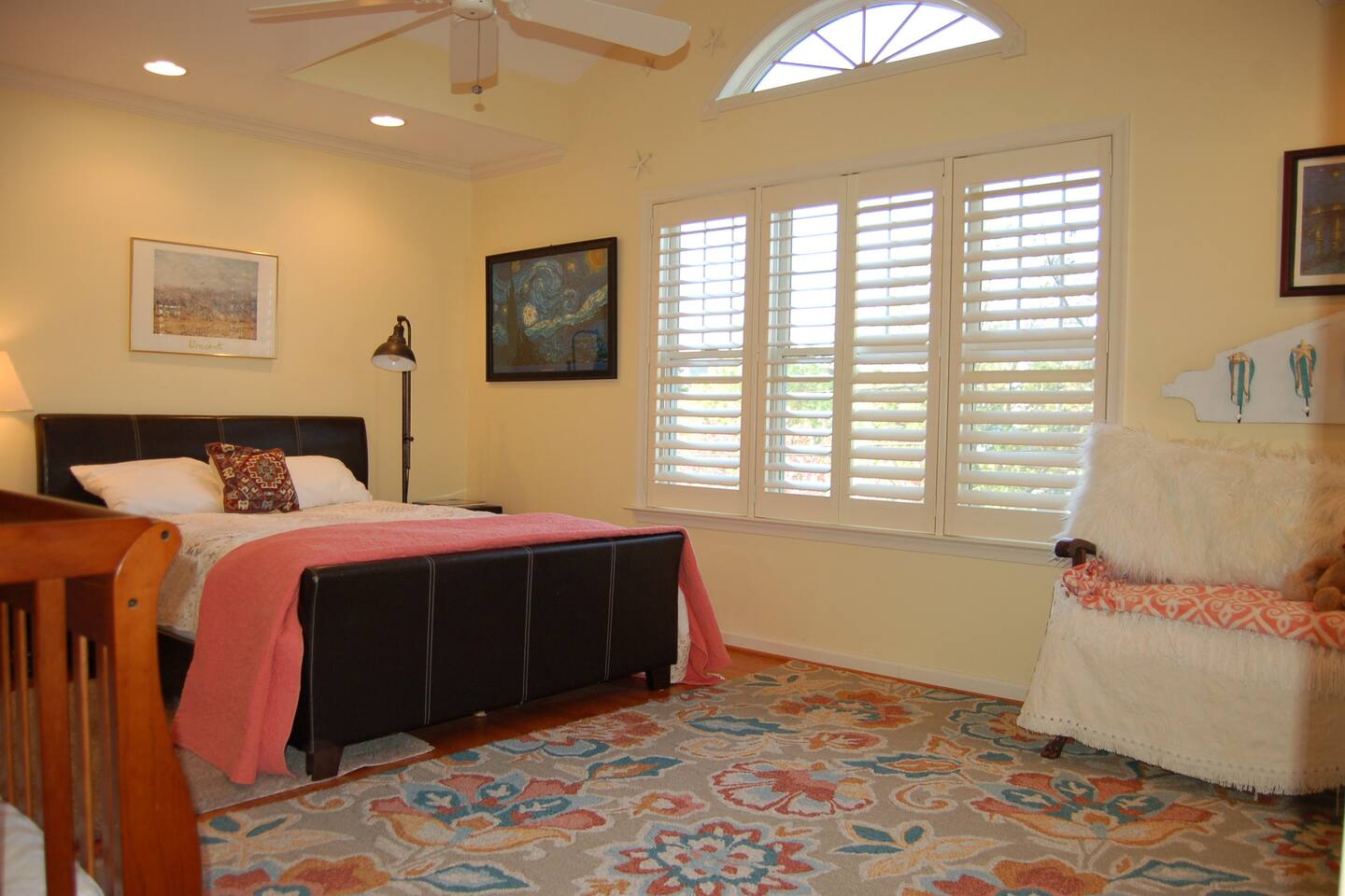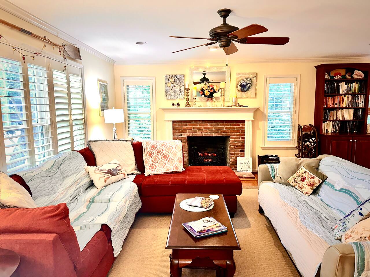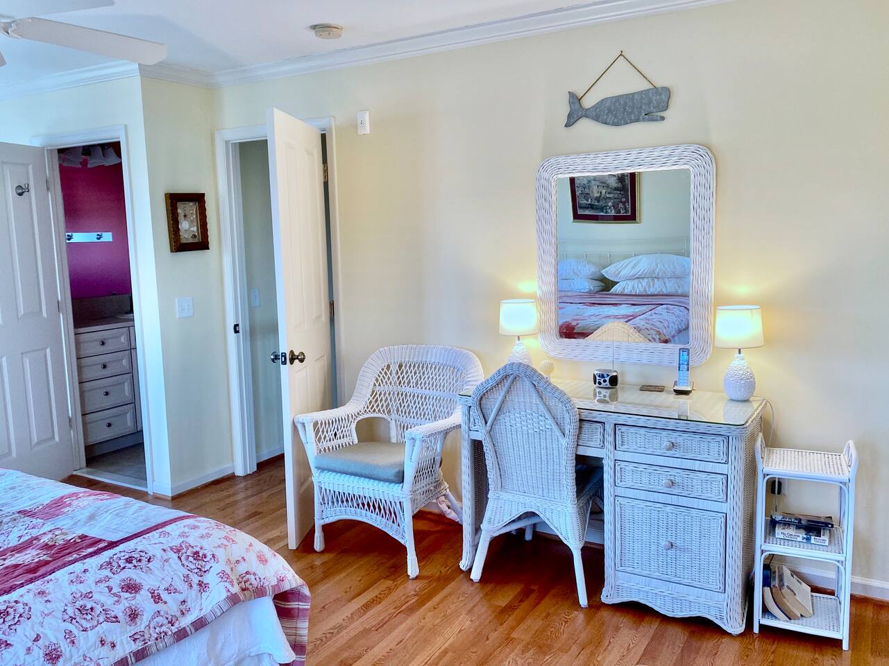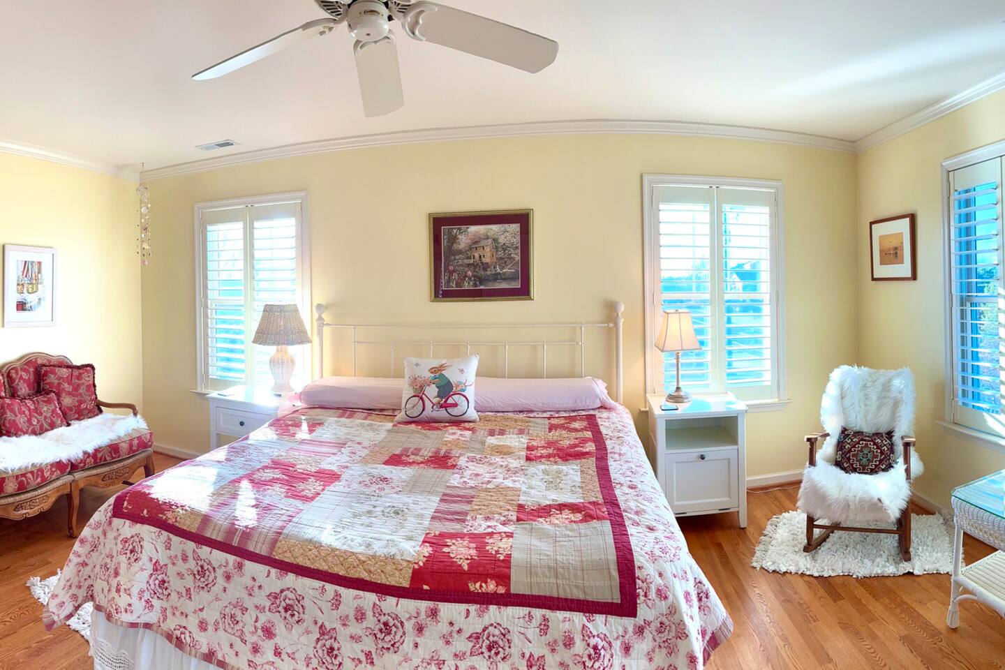 THE LEWES & CLARK BEACH HOUSE: Ideally located just three houses away from Lewes Beach, this 3000 SF house offers the perfect space to enjoy an inviting, classy and cozy beach vacation home that can easily sleep multiple families. The house layout has upstairs 4 bedrooms and 3 full bathrooms. Downstairs a flexible TV room with queen sofa beds could double as a bedroom with an adjacent bathroom with shower. The house is perfect for separate quiet time and large first floor living/dining and kitchen open areas with a two-story screened porch with backyard views of tidal wetlands looking toward the Lewes Canal. The house is outfitted for for all seasons, stocked with board games, books and many beach toys in the garage, with fun for all ages. The house has multiple desks and portable table to offer a novel remote work location. * Currently accepting reservations for 2025 and 2026. * Saturday to Saturday weekly rental during the summer. THE LEWES & CLARK BEACH HOUSE SLEEPS 15 WITH MANY OPTIONS: * 15 adults and children in upstairs bedrooms. * The 2nd living room doubles as a 5th bedroom to sleep 4. * If all adults, the town limits the number to 12. ****************************************************************************************** 1ST FLOOR: * PROVIDES GATHERING, COOKING, DINING AND RELAXING IN LIVING ROOM & KITCHEN AREA * Return from the beach entering from the back deck after using the outdoor shower and dropping gear in the garage. Grab a cold drink or snack from the second refrigerator and pantry in the laundry room. LIVING ROOM/KITCHEN/DINING ROOM: The open living room/dining/kitchen centers conversation and activity between the dining room table, adjoining the chef’s kitchen, bay-window reading nook, and the fireplace seating area. This area is well equipped with a wonderful library of books, puzzles and games. KITCHEN: The well-equipped kitchen has stainless steel appliances, granite counters, 5-seat breakfast bar, new dishwasher and 5 burner gas stovetop with warming drawer and 2 ovens. The kitchen exits to screened porch and gas grill on the deck. Flexible dining options for up to 19+ at mealtime in dining room, breakfast bar and screened porch, and outdoor picnic table. 2ND LIVING ROOM (or 5th BEDROOM) This 1st floor second living room has 2 queen sofa beds with adjoining bathroom with walk-in shower. The 2nd living room has a 48” wall mounted flat screen tv with 500+ channels, DVD player, and books. LAUNDRY ROOM: The laundry room has a new large washer and dryer, a utility sink, pantry and second refrigerator with ice maker. GARAGE: * Lots of gear available to play or relax at the beach or go for a bike ride on the Breakwater Trail. * Bikes, beach chairs, toys, beach bags, cooler and kayaks. * Use of bikes and kayaks are at renter's own risk, per rental agreement. SCREENED 1ST FLOOR PORCH: * Views of sunset and wetlands toward canal * Table for 6 * Rocking chairs * Table for 2 * Gas grill on deck * Picnic table in yard 2ND FLOOR - FOUR BEDROOMS * The 2nd floor has four bedrooms. * 2 bedrooms have private ensuite bathrooms. * One bedroom has private access to the 2nd story screened porch overlooking the Lewes Canal wetlands. This bedroom shares a Jack and Jill bath with double sinks, a shower and Jacuzzi tub with the VanGogh Bedroom that has a queen bed and a crib. KING BEDROOM SUITE #1 - WETLANDS VIEW (Sleeps 3) 1 Four-poster King, Twin Daybed, Private Full Size Bath, Full Size Closet, Spectacular view of Sunsets over Canal wetlands. KING BEDROOM SUITE #2 - COTTAGE BEDROOM (Sleeps 2) 1 King, Private Full Size Bath, Full Sized Closet, Night Stands, Work from Home Desk, Chair and LoveSeat. Sunrise view. KING BEDROOM SUITE #3 - PORCH BEDROOM (Sleeps 4) 1 King, Twin Daybed, Twin Trundle Bed, Night Stands, Dresser, Wall-mounted 48 inch TV, (with 500+ Xfinity Channels) and access to 2nd Story Screened Porch with hammock to enjoy canal wetlands views of Sunset. Jack and Jill Bath, Shared with Bedroom #4: Double sinks, Jacuzzi jetted Tub, & Large Shower. QUEEN BEDROOM #4 - VANGOGH BEDROOM (Sleeps 2 + baby) 1 Queen, 1 Cherry Wood Crib, Night Stands, Rocking Chair, VHS TV with Disney Movies. Jack & Jill Bath, Shared with Master Bedroom #3: Double Sinks, Jetted Tub, & Large Shower.