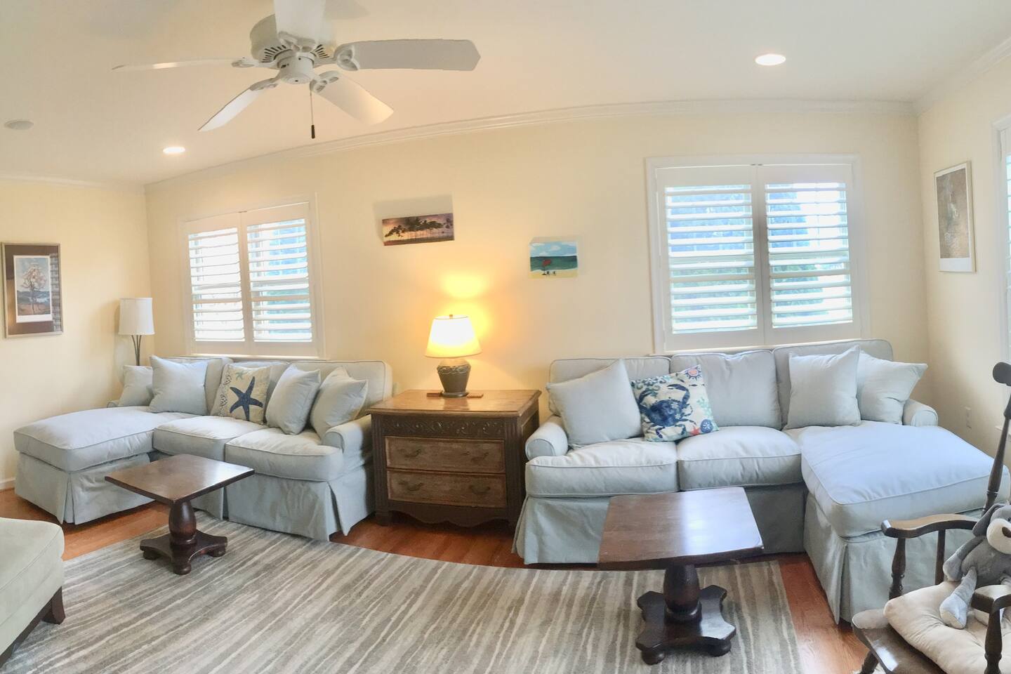 Ideally located, this 3000 SF beach house is 150 steps to the dunes at Lewes Beach and offers the perfect space to enjoy a classy and cozy beach vacation. The house can easily sleep multiple families. The house layout has separate areas for quiet time and open areas to share meals/ cook, play games and relax with a two-story screened porch with backyard views of tidal wetlands looking toward the Lewes Canal.